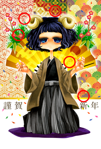 去年が簡単だったので今年はちょっと難しくしたいな〜と思いながらおじぎさんを小さく描きましたが小さすぎて印刷の画素に負けてます。